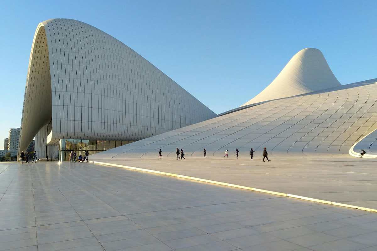 Rising above Baku’s skyline, the Flame Towers are illuminated with vibrant LED displays, representing Azerbaijan’s rich history as the “Land of Fire.” These towers symbolize the country’s modern spirit and cultural pride. - Heydar Aliyev Center, Baku